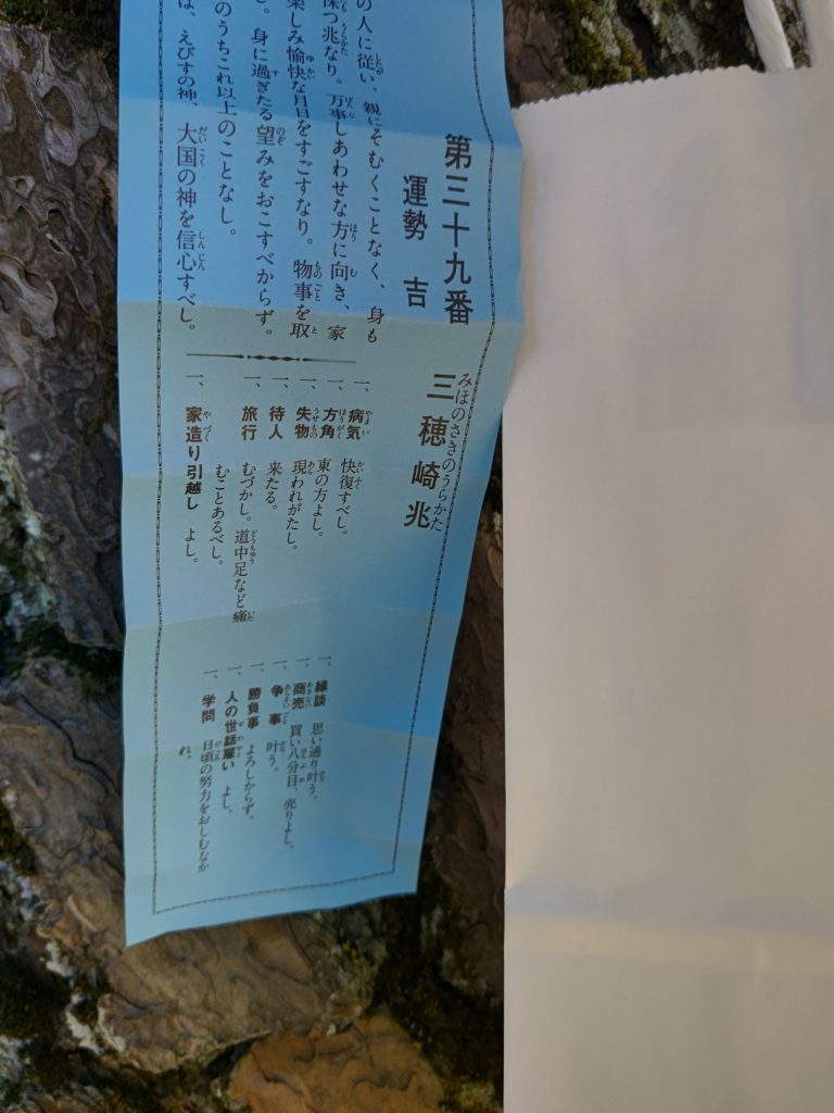電車乗り過ごしてさいたま新都心で降り損ねたので、大宮駅から歩くルートで。今年はおみくじが完全セルフになっていて、しかも紫色や水色や黄色など、札がカラフルになっていた。